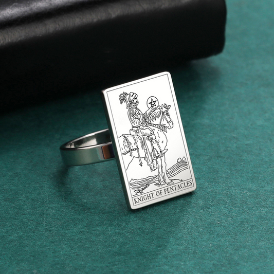 Engraved Tarot Card Ring - Stainless Steel Minor Arcana (Pentacles)