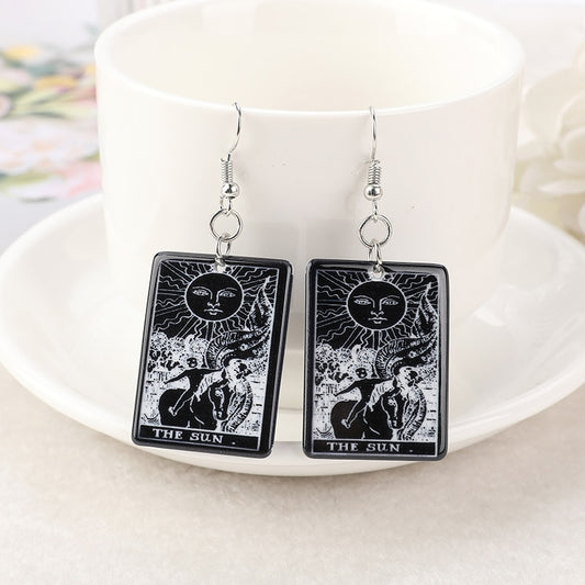Tarot Card Pendant Necklace, Transparent Crystal Star Moon Sun