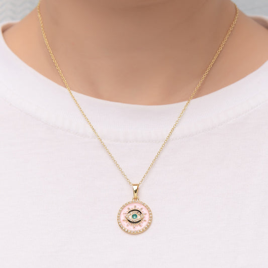 Gold Evil Eye Necklace, Circle Pendant (White) | Spiritual Jewelry