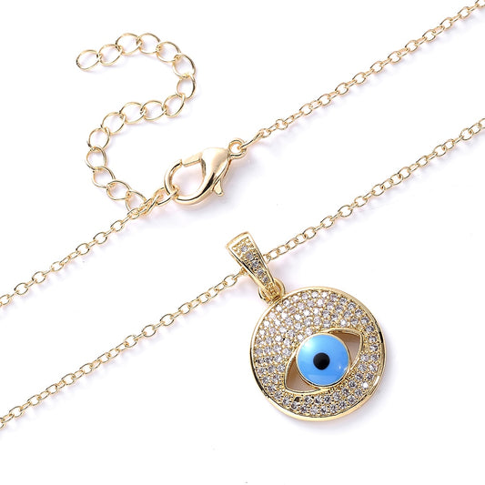Gold Evil Eye Necklace, Circle Pendant | Spiritual Jewelry