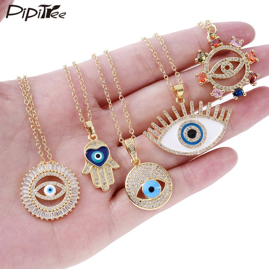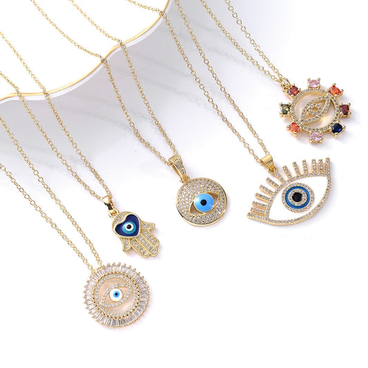 Turkish Style Zircon Jewelry Necklace Pendant Trendy Copper CZ Stone Enamel Hamsa Hand Evil Eye Necklace for Women Collier Femme