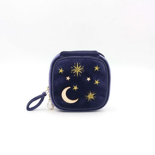 Cosmic Moon and Stars Velvet Cosmetic Bag | Starry Makeup Storage Bag