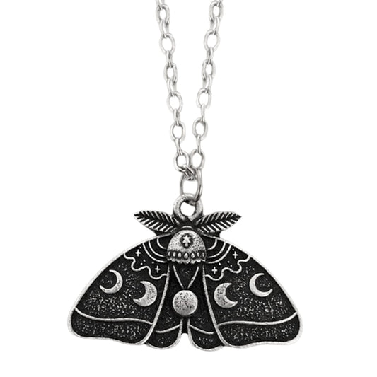 Moon Phase Lunar Moth Pendant & Necklaces | Spiritual Jewelry for Goth, Emo, Wicca, Witch Occult Style