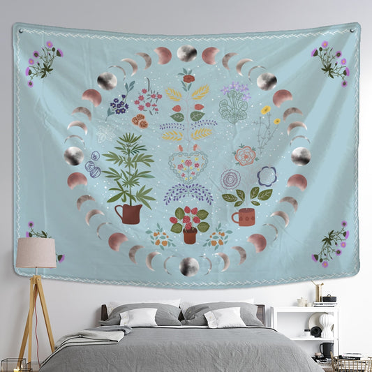 Moon Phases Tapestry Wall | Moon & Floral Hanging Tapestry