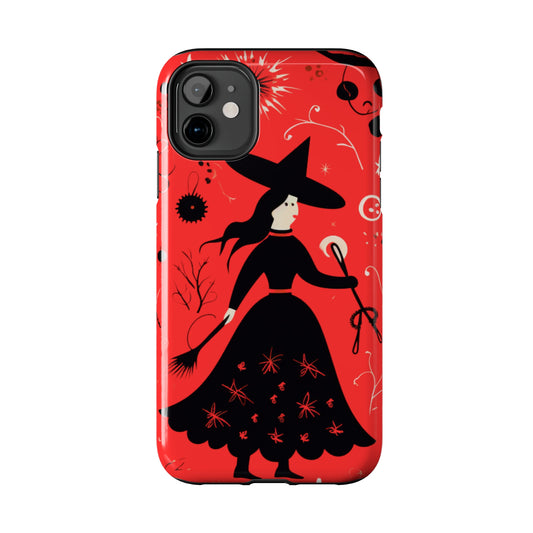 Red Dark Forest Witch Tough iPhone Cases | Abstract Witchy Protective Phone Case | Impact-Resistant, Anti-Shock | iPhone 15