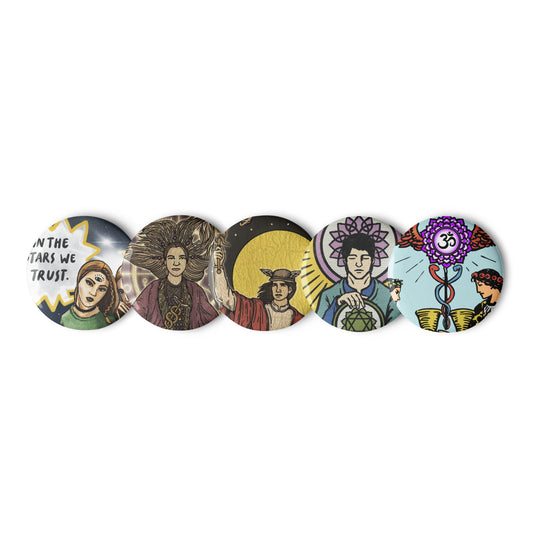 Set x5 Tarot Awakened Artwork pin buttons