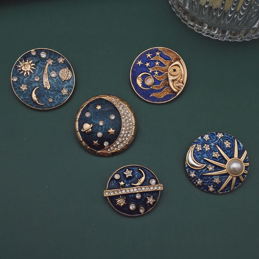 Celestial Blue Star, Moon, Sun and Galaxies Badge Pin