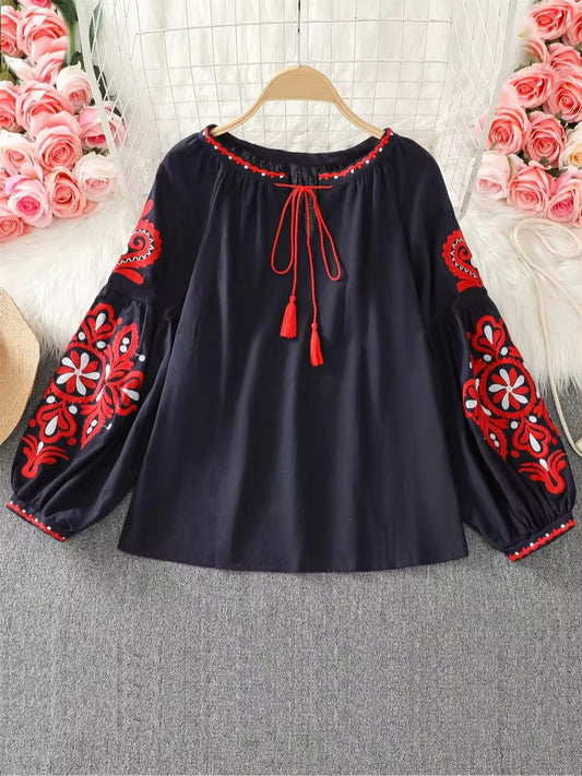 Bohemian Nature’s Essence Autumn Sleeve Top, High-Quality Stiched Design and Pattern