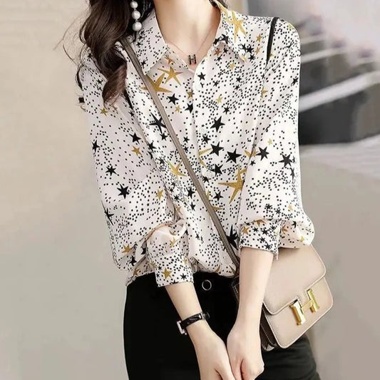 Starry Loose Celestial Blouse - Dress Shirt | White, Yellow, Black