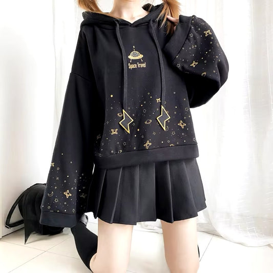 Women's - Girls Cute Cosmic / Lightning Bolt Sweater | Black Large Sleeves | Space Travel, Pullover