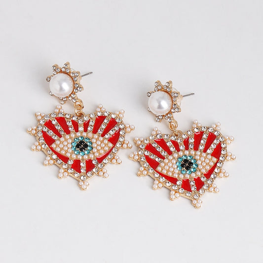 Evil Eye Crystal Pearl Heart Drop Earrings | Spiritual Jewelry