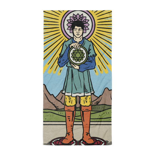 Four of Pentacles Chakra Tarot Card Bath and Beach Towel