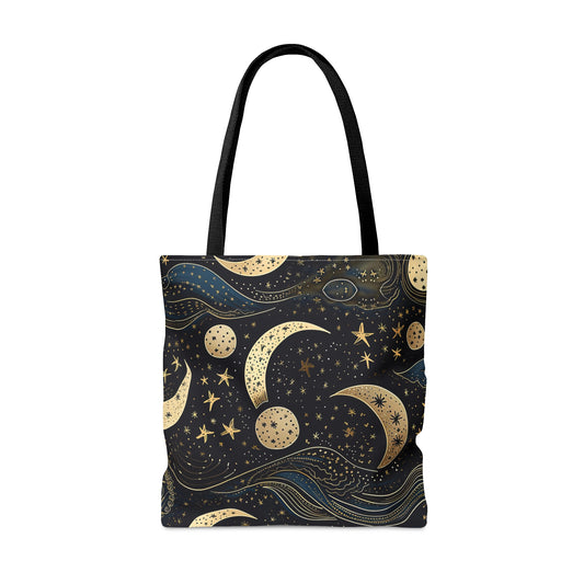Starry Celestial Moon Tote Bag | Aesthetic Abstract Design, Midnight Moon in the Night Sky | Space, Stars, Planets, Galaxies | Astronomy