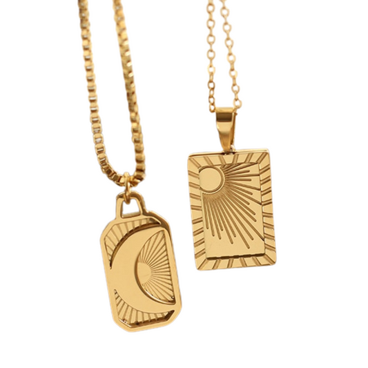 'Sun & Moon Mirage' Gold Necklace & Pendant | Astrology & Tarot Card NecklaceRegular price $15.00 CADRegular priceUnit price per$8.00 CADSale price $15.00 CAD