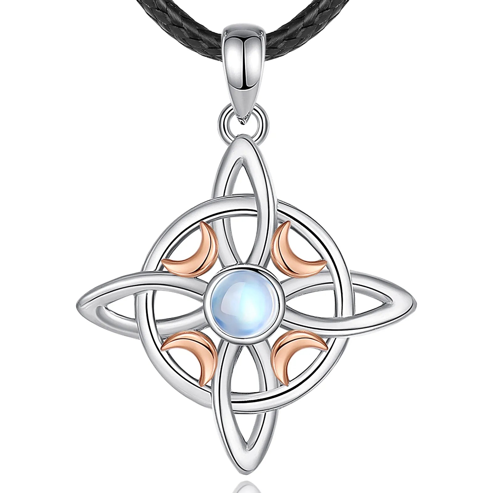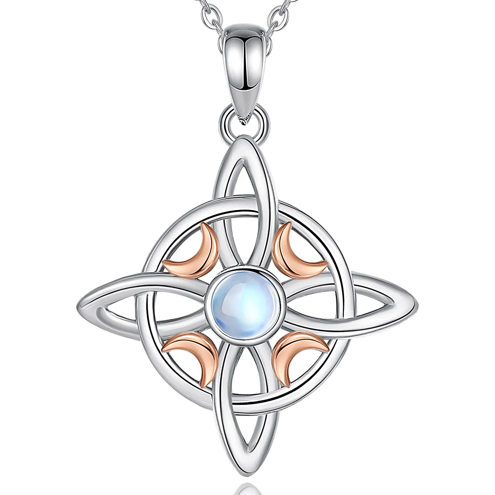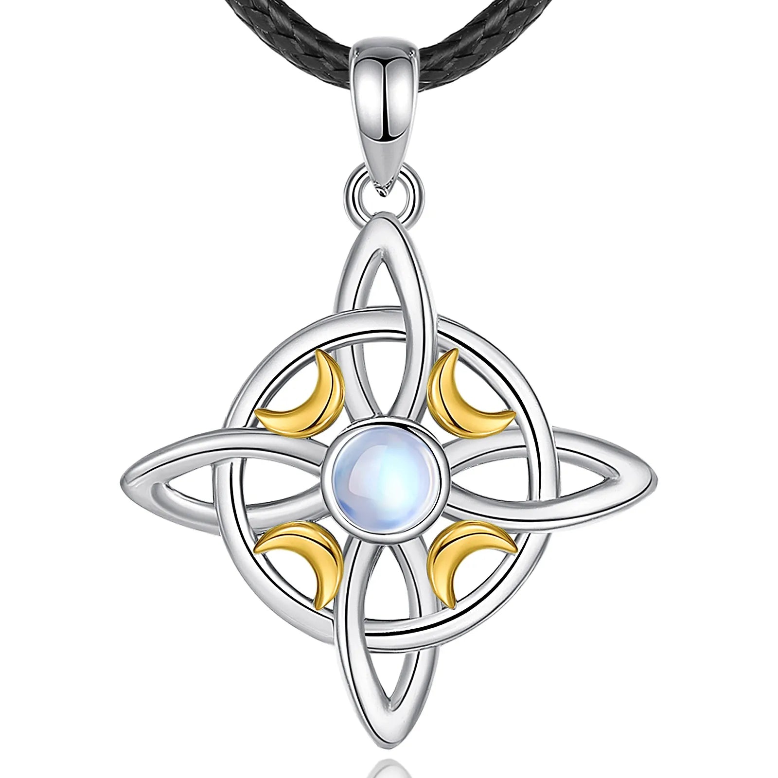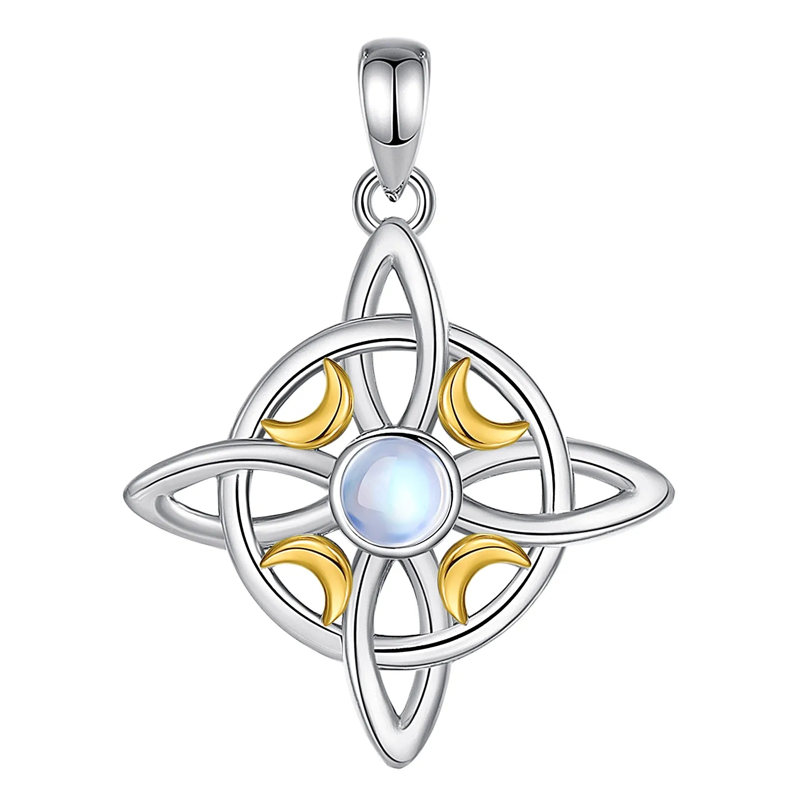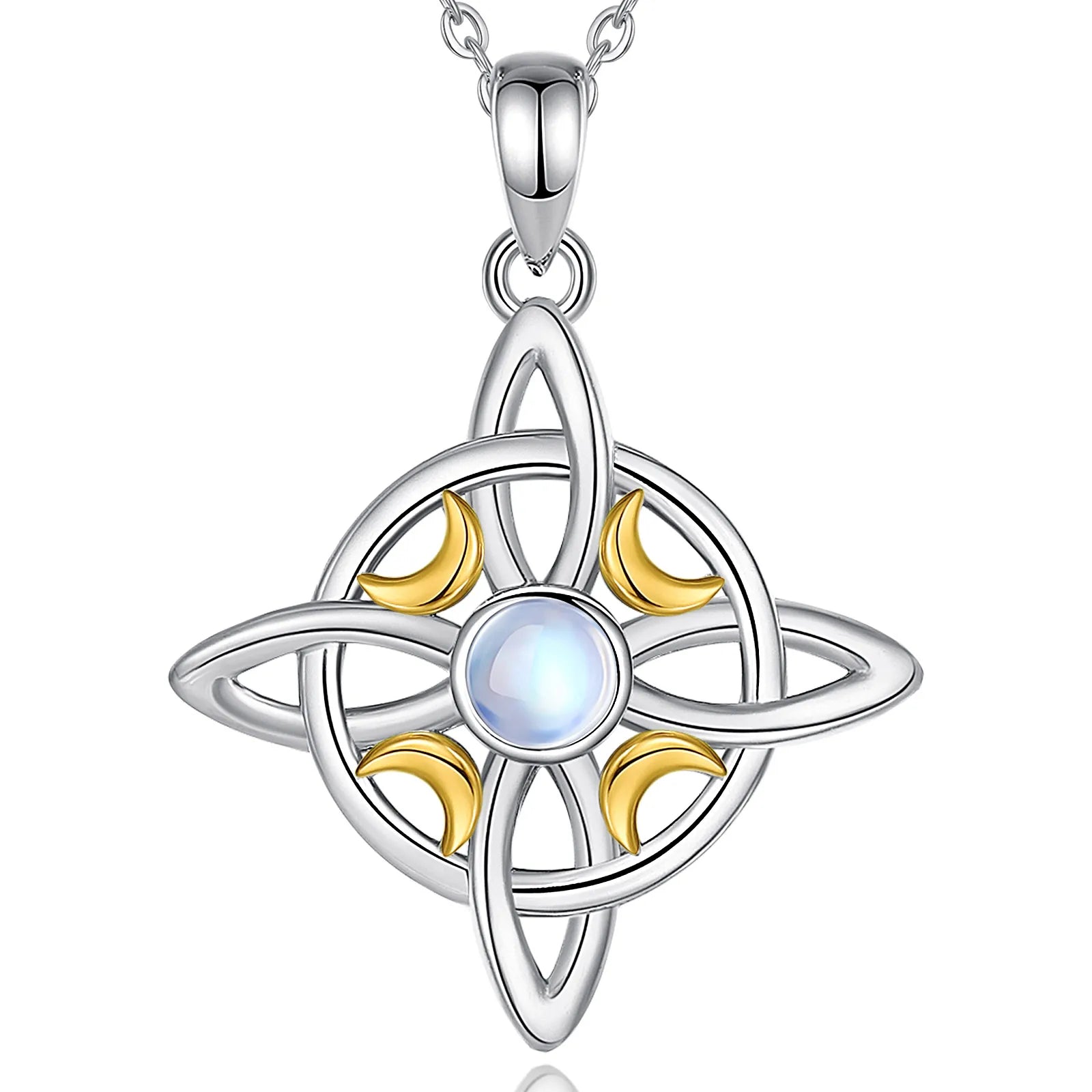925 Sterling Silver, Gold Moon Witch Celtic Knot Necklace Jewelry