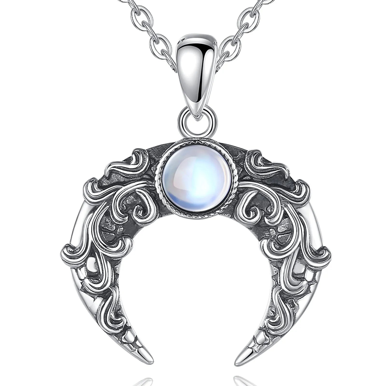 925 Sterling Silver Moon Necklace – Moonstone Amulet Pendant