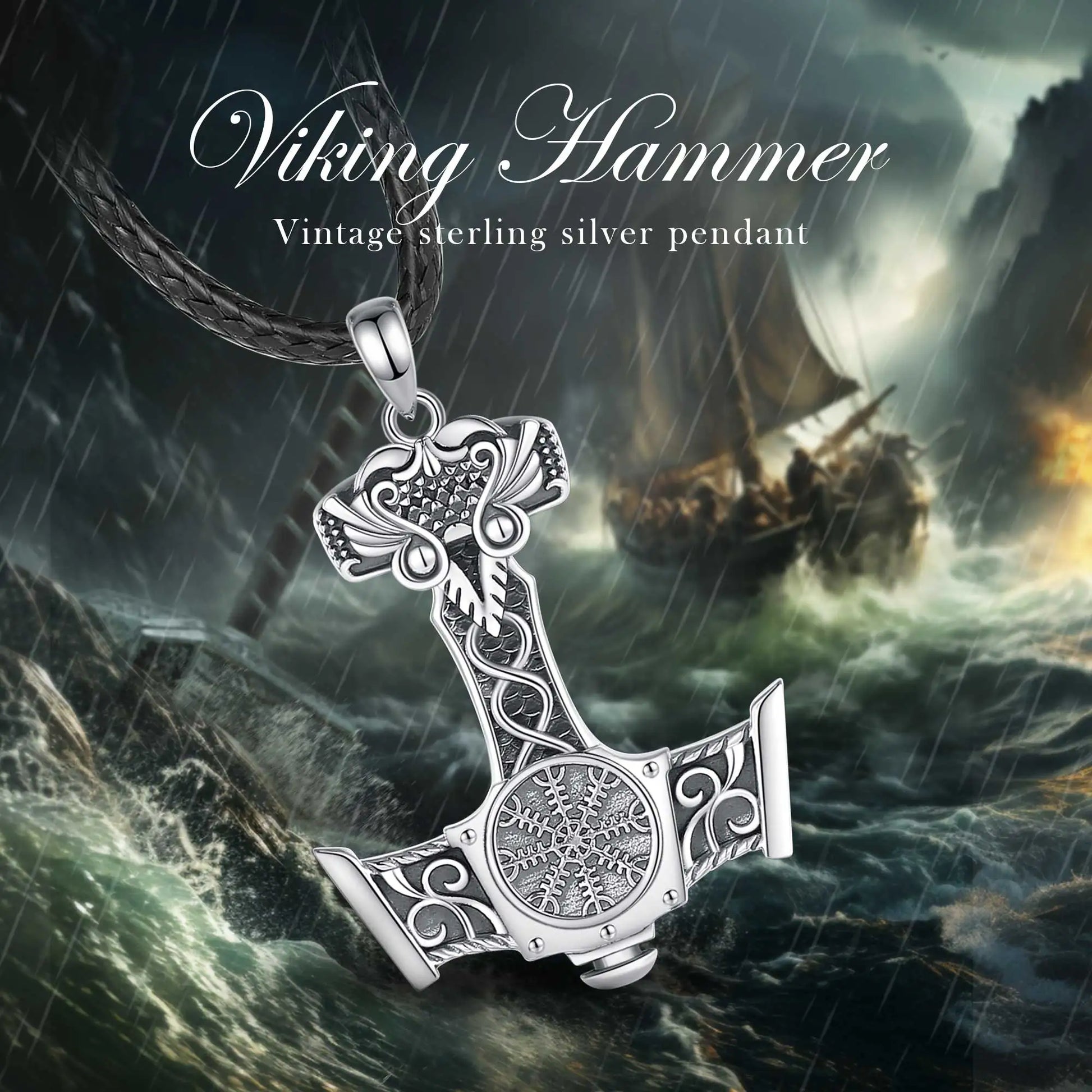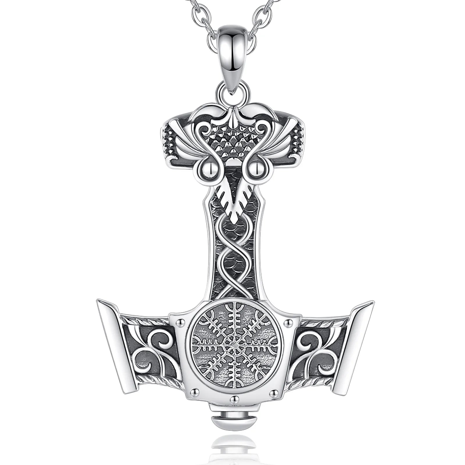 925 Sterling Silver Norse Viking Thor's Hammer Necklace and Pendant Amulet