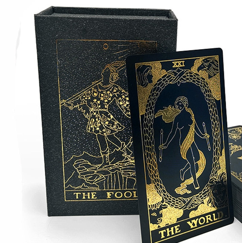 Black-Gold Foil Tarot Card Deck with Storage Case | Rider-Waite-Smith