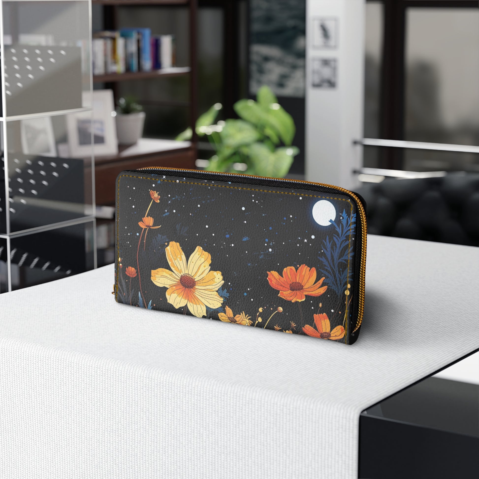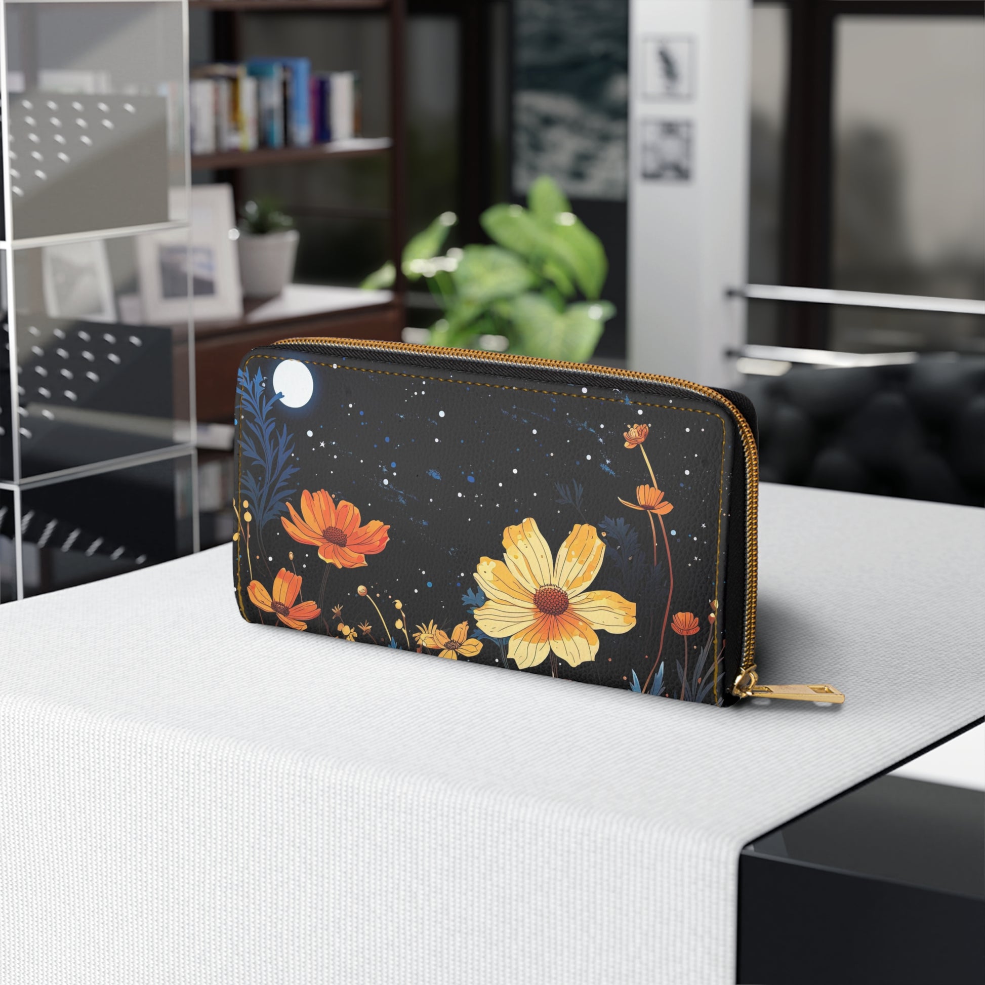 Celestial Wildflower Zipper Wallet | Moonlight Flowers Premium Design