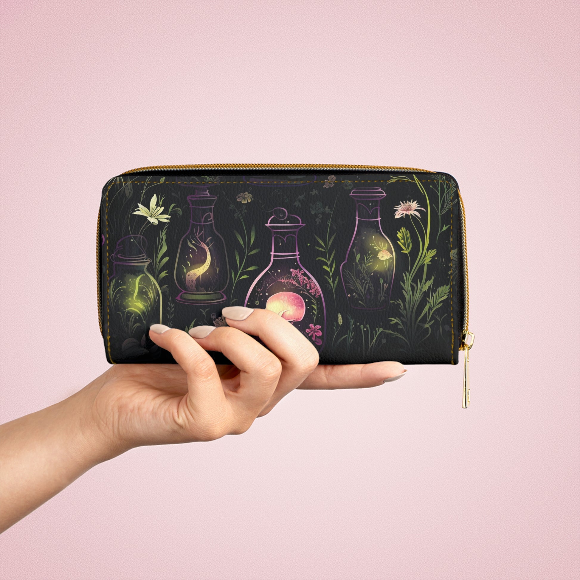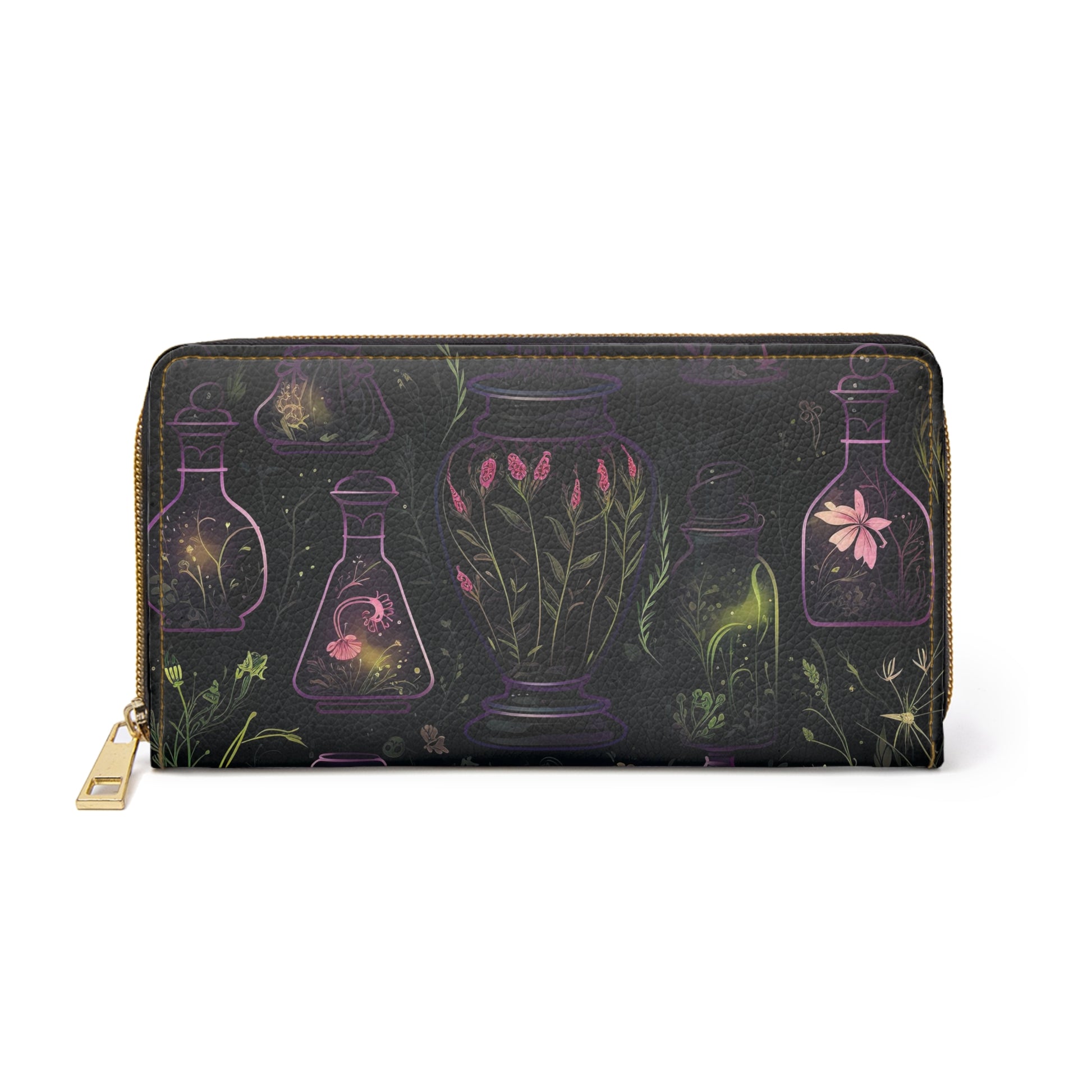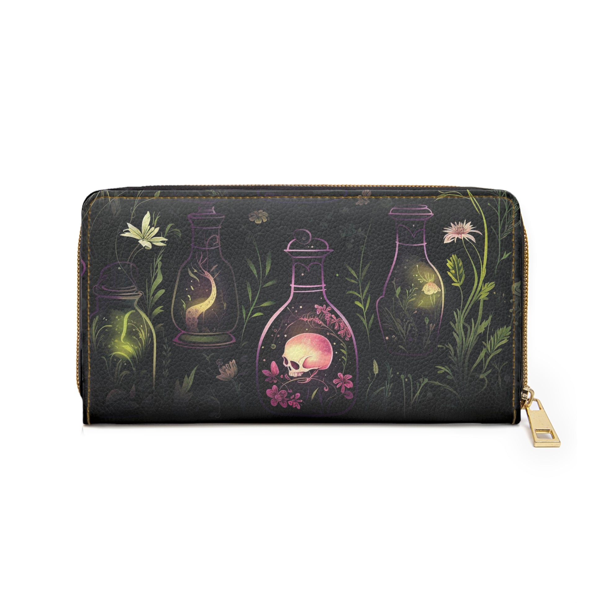 Dark Forest Skull Zipper Wallet | Witchy Tinctures in the Eerie Dark Forest Faux Leather Wallet