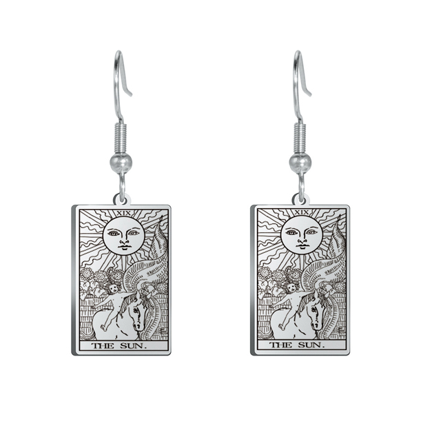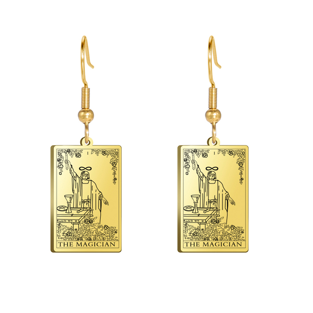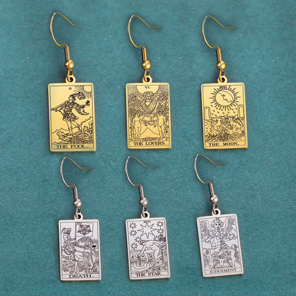 Engraved Tarot Card Earrings - Stainless Steel Major Arcana