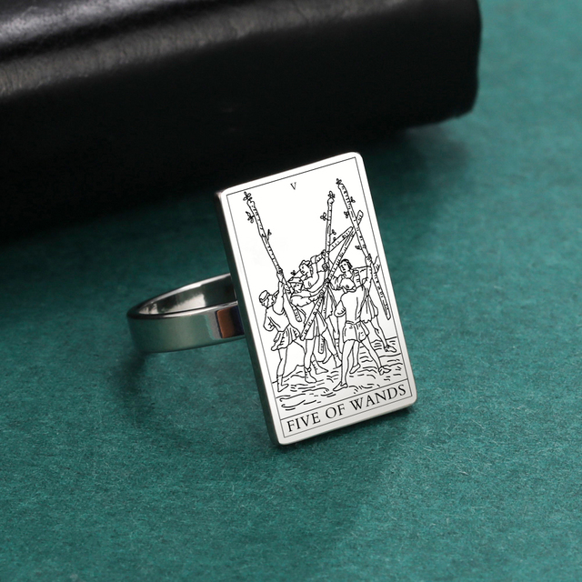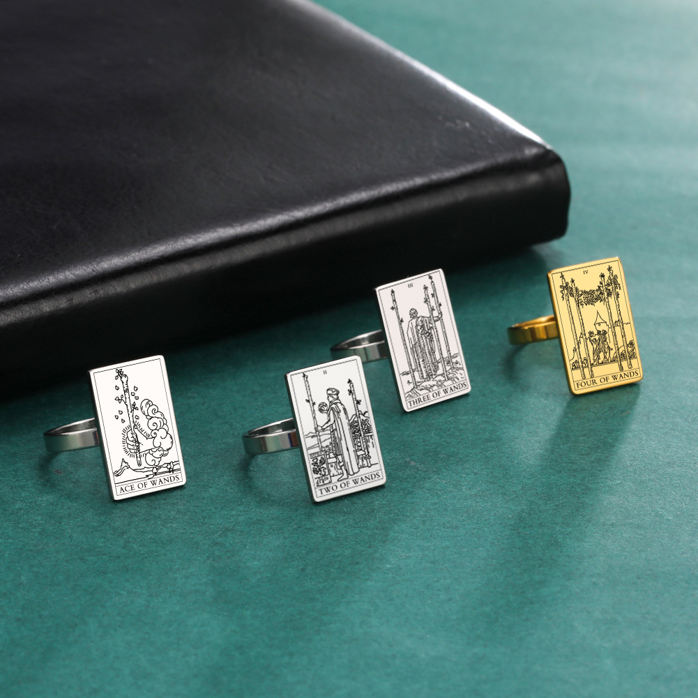 Engraved Tarot Card Ring - Stainless Steel Minor Arcana (Wands)