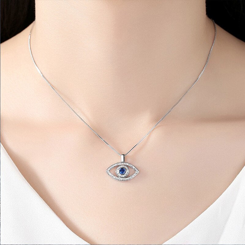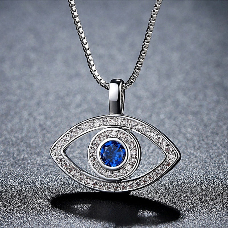 Evil Eye Crystal Necklace | Hamsa Style, Silver Spiritual Jewelry
