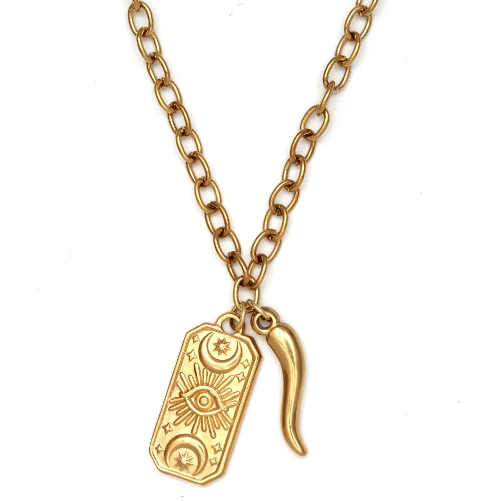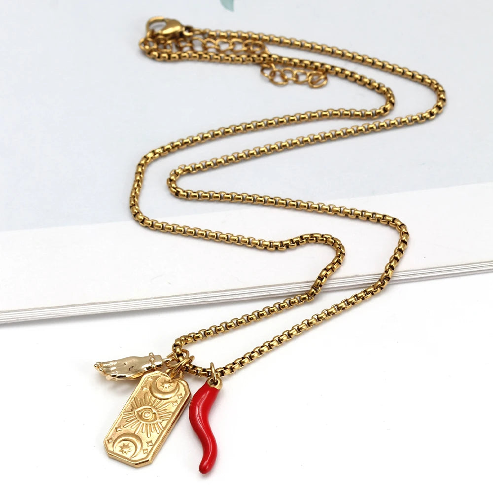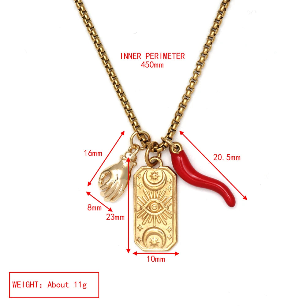 Ward off negativity in style with this Handmade Evil Eye Chilli Pepper Pendant Necklace. Featuring a Turkish Evil Eye charm and a gold-colored finish, this unique piece blends protection with bold elegance. Perfect for those who love spiritual symbolism with a touch of edgy flair. 🔮✨