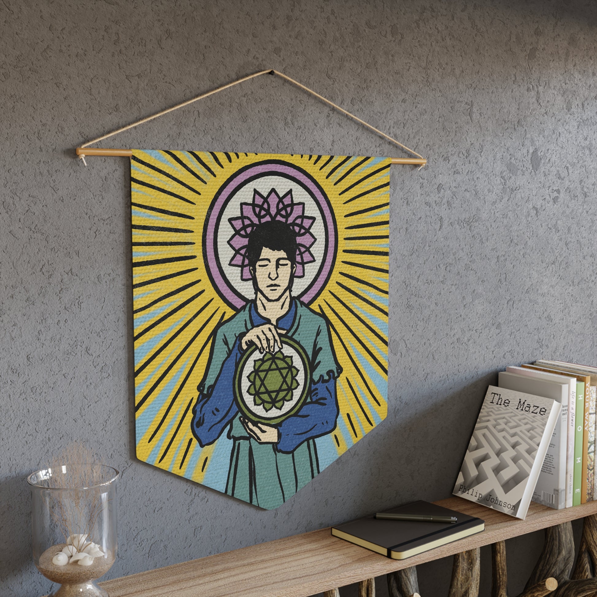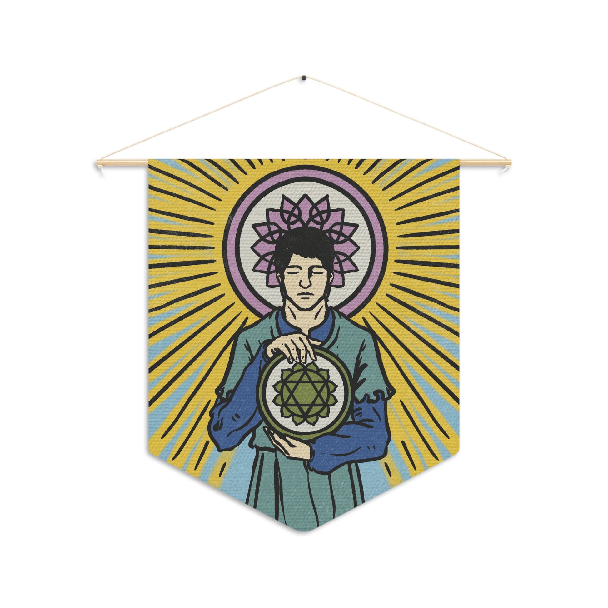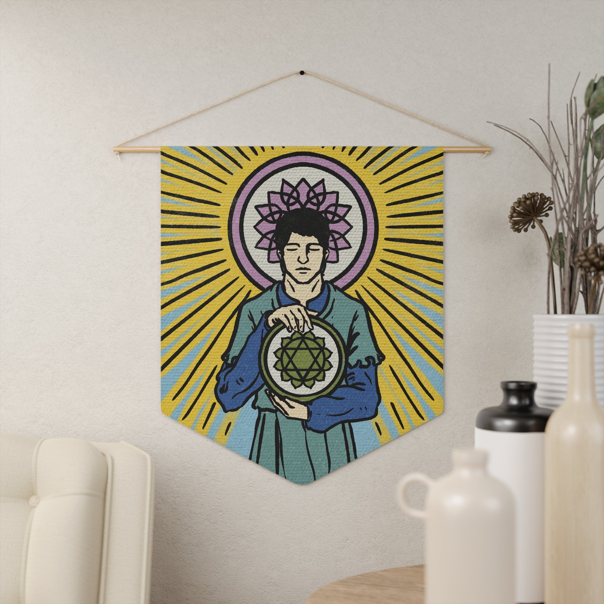 'Four of Pentacles' Tarot Card Chakra Rendition Hanging Wall Pennant | Divination, Spiritual Home Decor