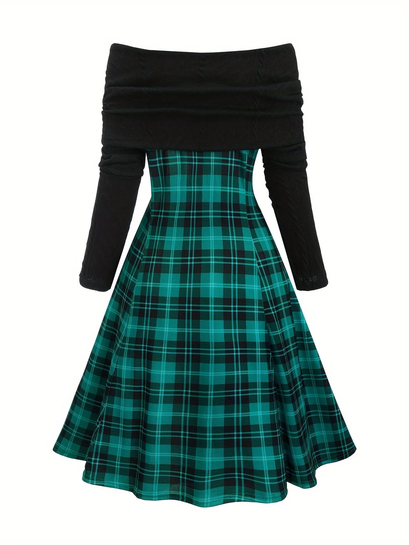 Green Plaid Elegant Dress – Women's Gothic-Style Apparel