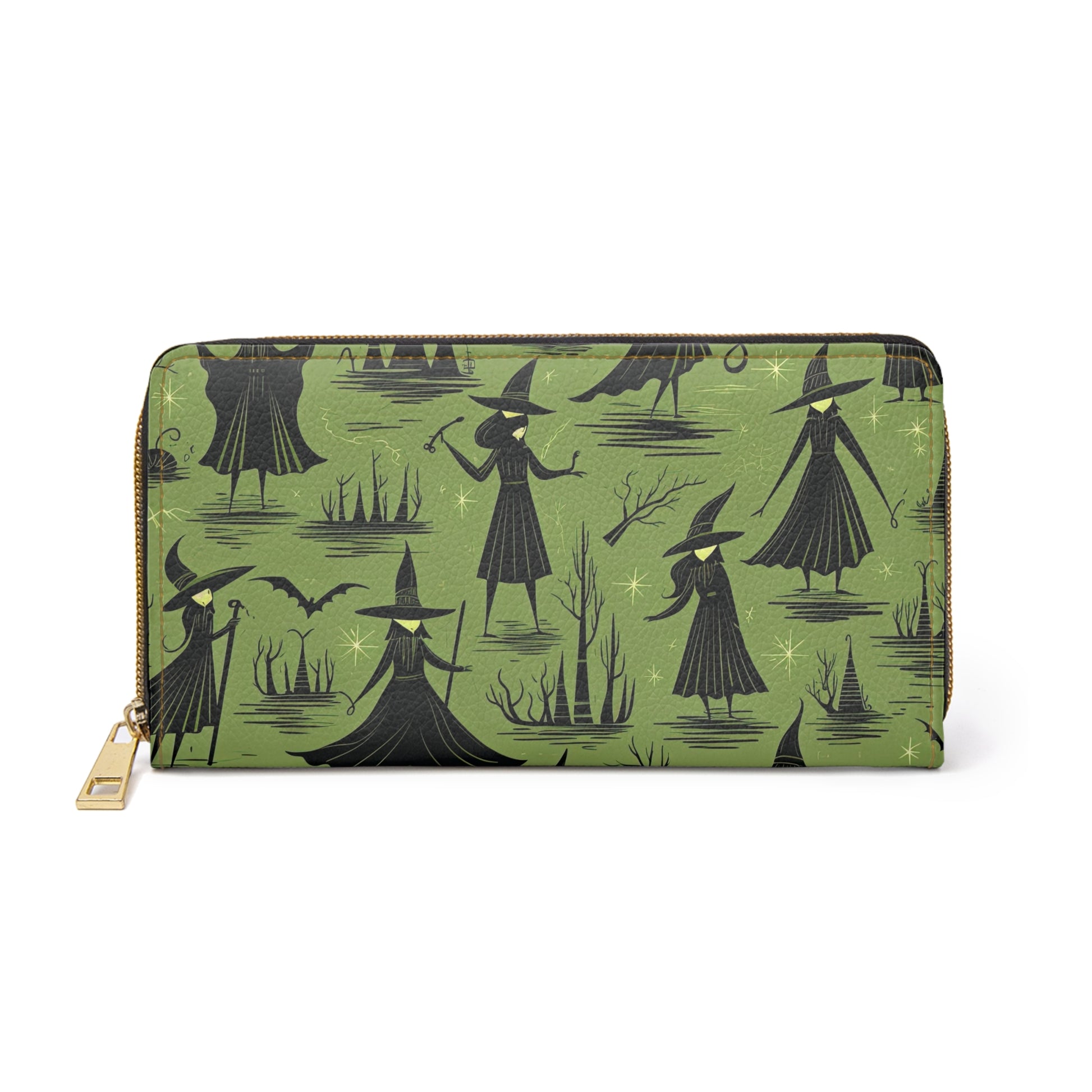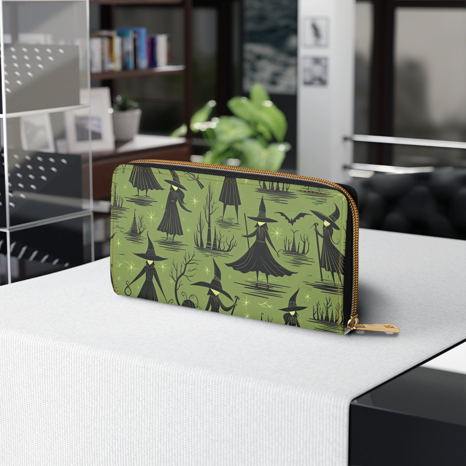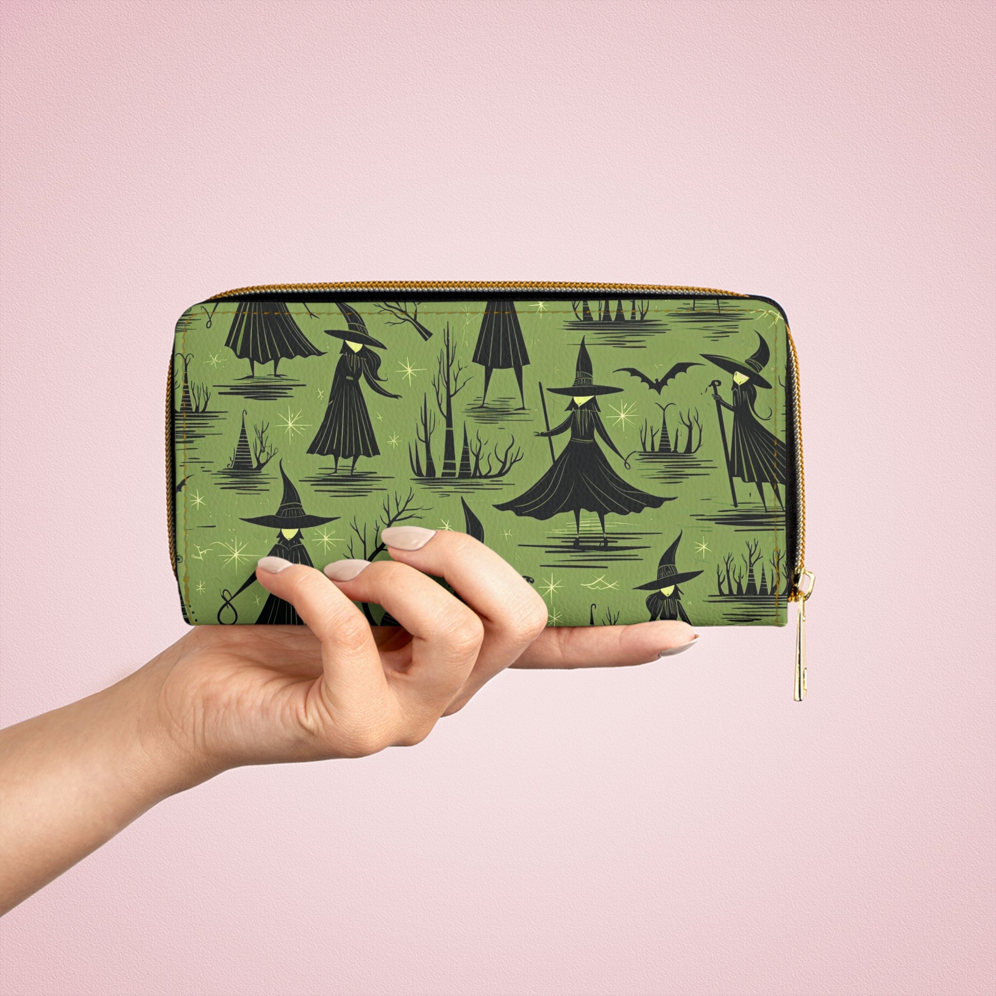Green Witch Pattern Zipper Wallet | Aesthetic Premium Wallet Design