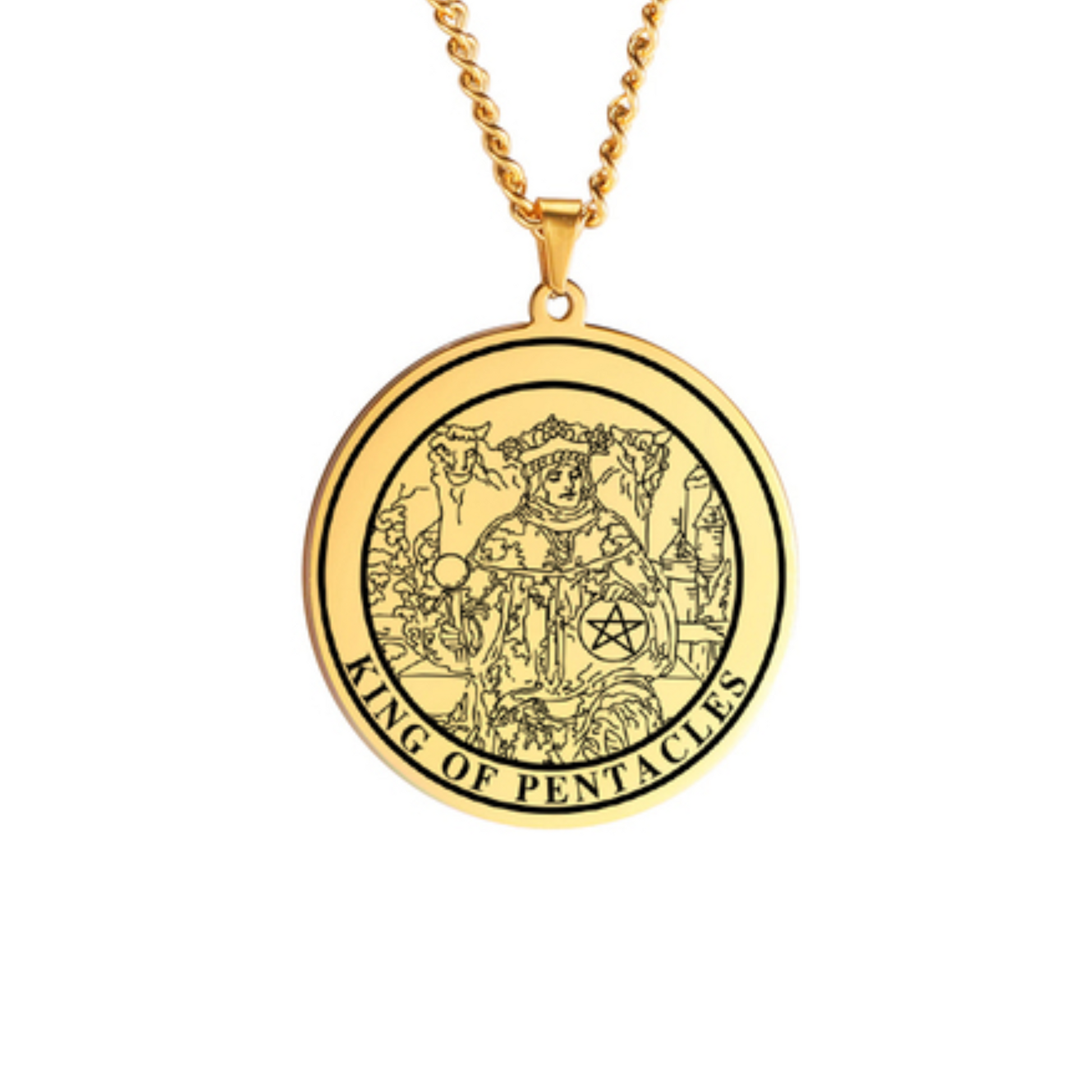'King of Pentacles' Tarot Card, Minor Arcana Round Pendant - Necklace | Jewelry