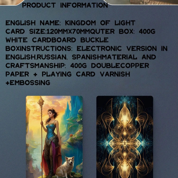 Step into the cosmos with the Kingdom of Light Stars Tarot, a breathtaking deck infused with celestial energy and mystical artistry. Designed with 100% original illustrations, this deck is a true spiritual masterpiece, perfect for tarot enthusiasts and collectors alike.