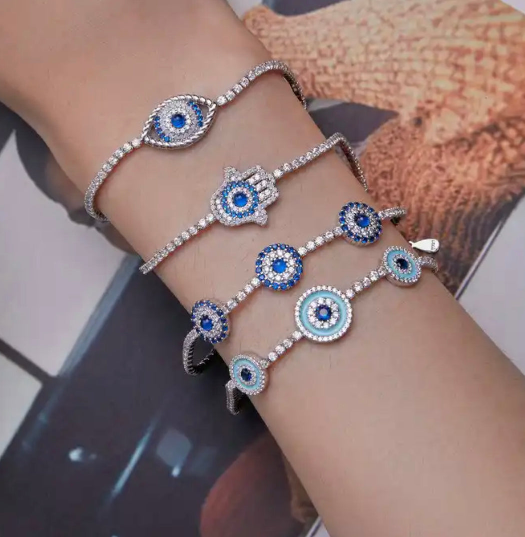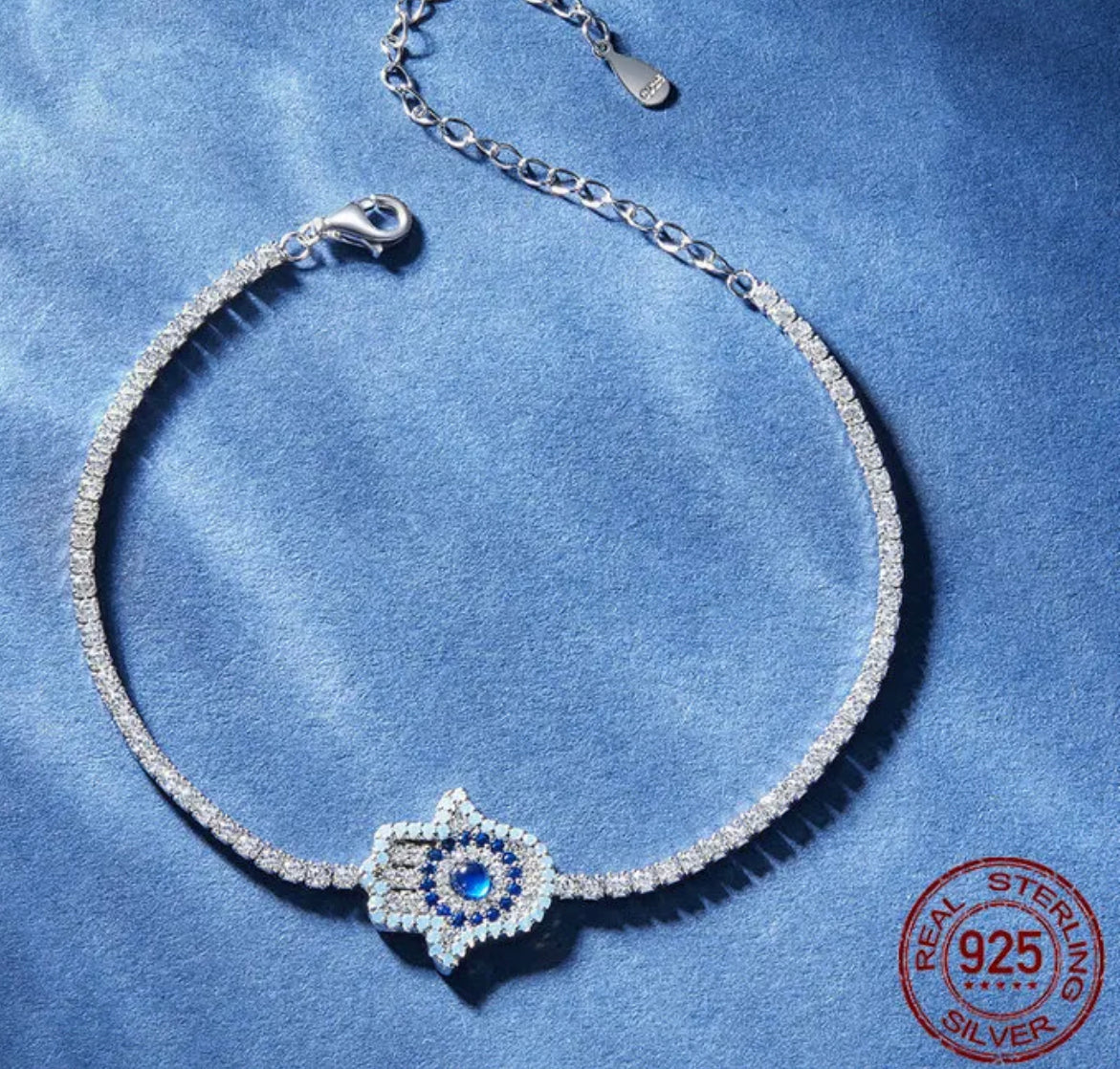 Sterling Silver Evil Eye / Devil’s Eye Bracelet | Hamsa, Box Chain Jewelry
