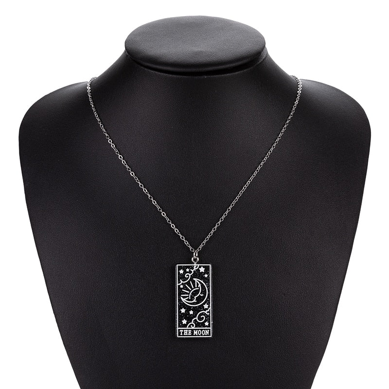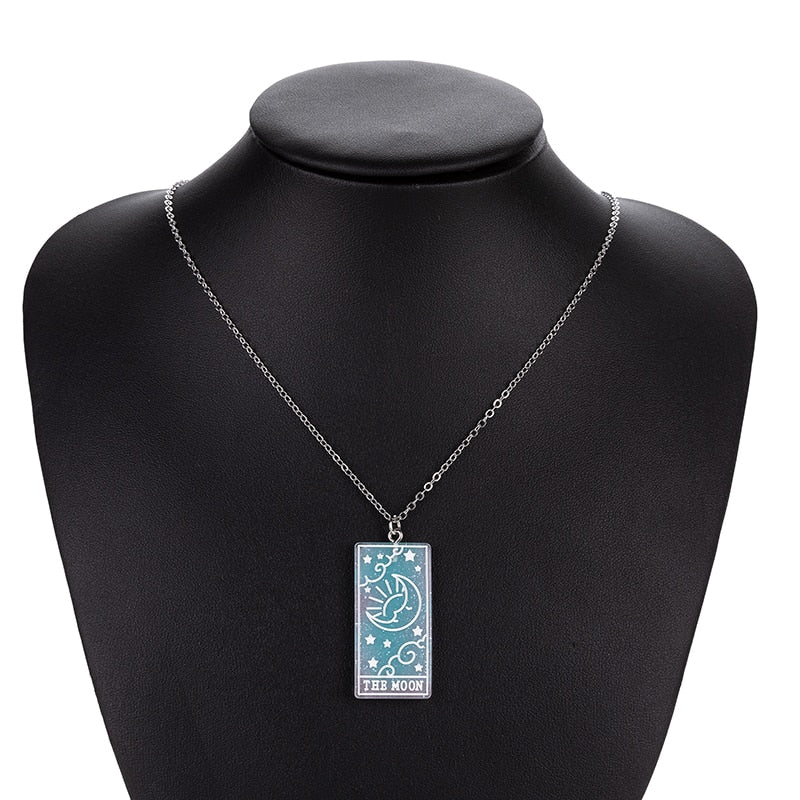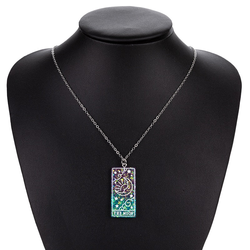 This sparkly and glittery Tarot Card Necklace features The Moon on various aesthetic color plates. Choose your favorite one and express your creativity!
