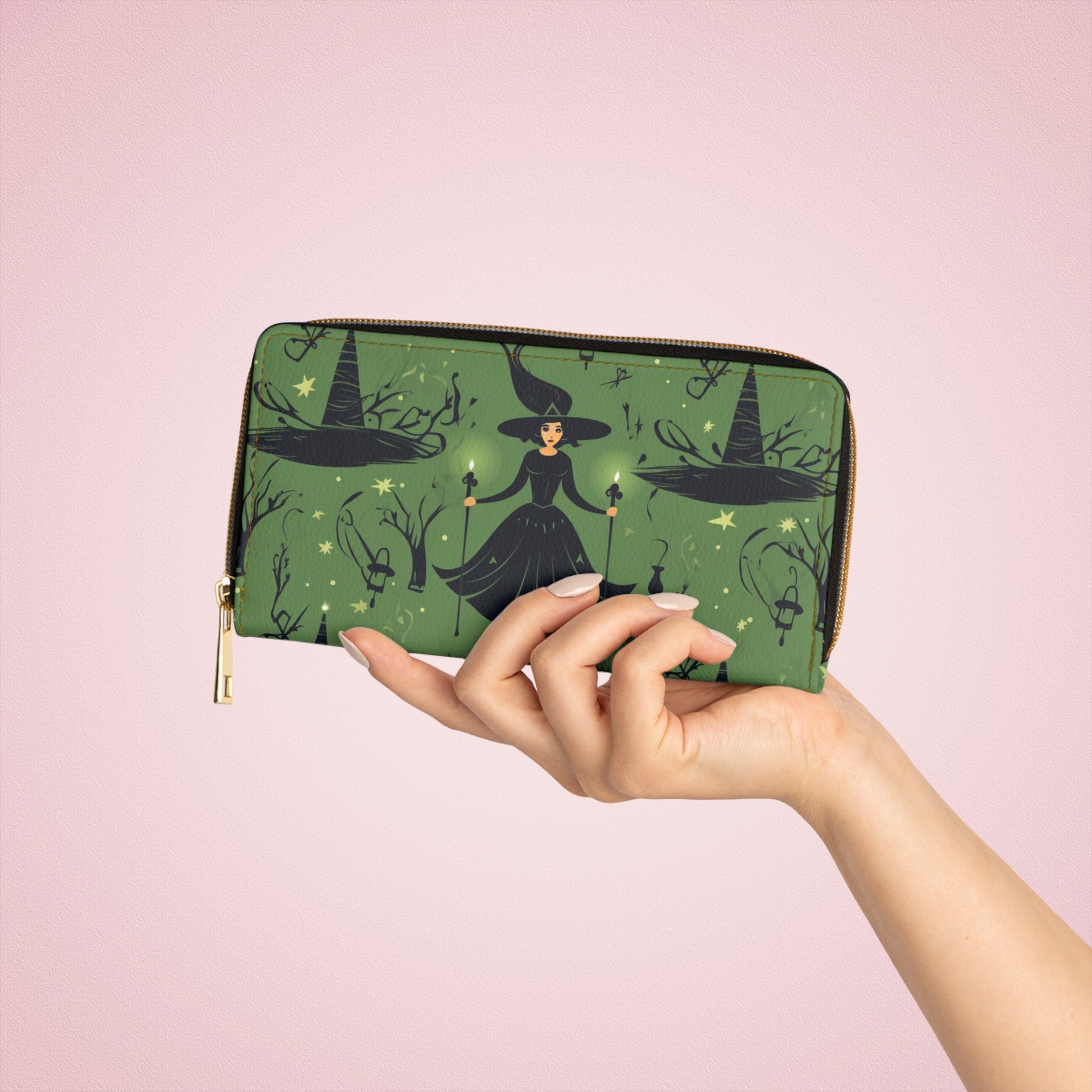 Witchy Green Zipper Wallet | Dark Forest Witch Wallet Design