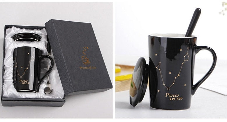 12 Constellations, Astrology - Zodiac Ceramic Mugs with Spoon Lid | 400ml Coffee Cup