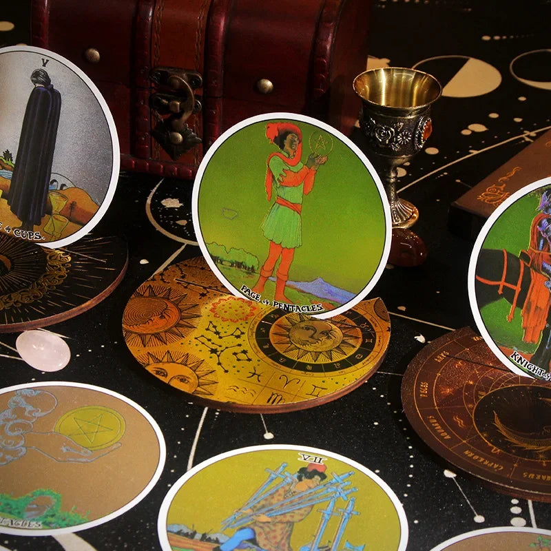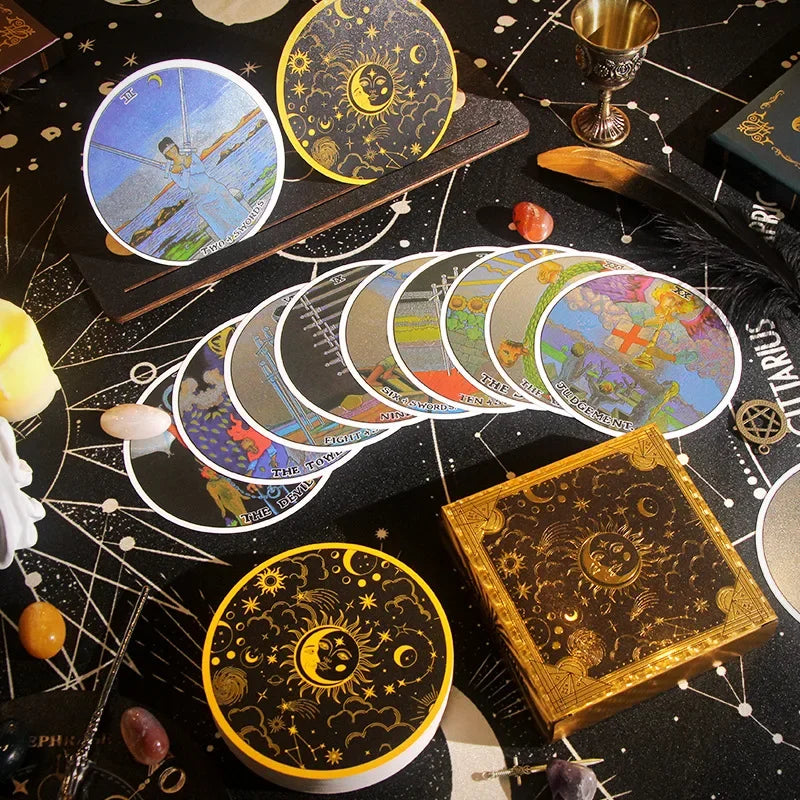 1909 Circular Gold Foil Tarot Card Deck Set - Rider-Waite-Smith Unique Round Deck