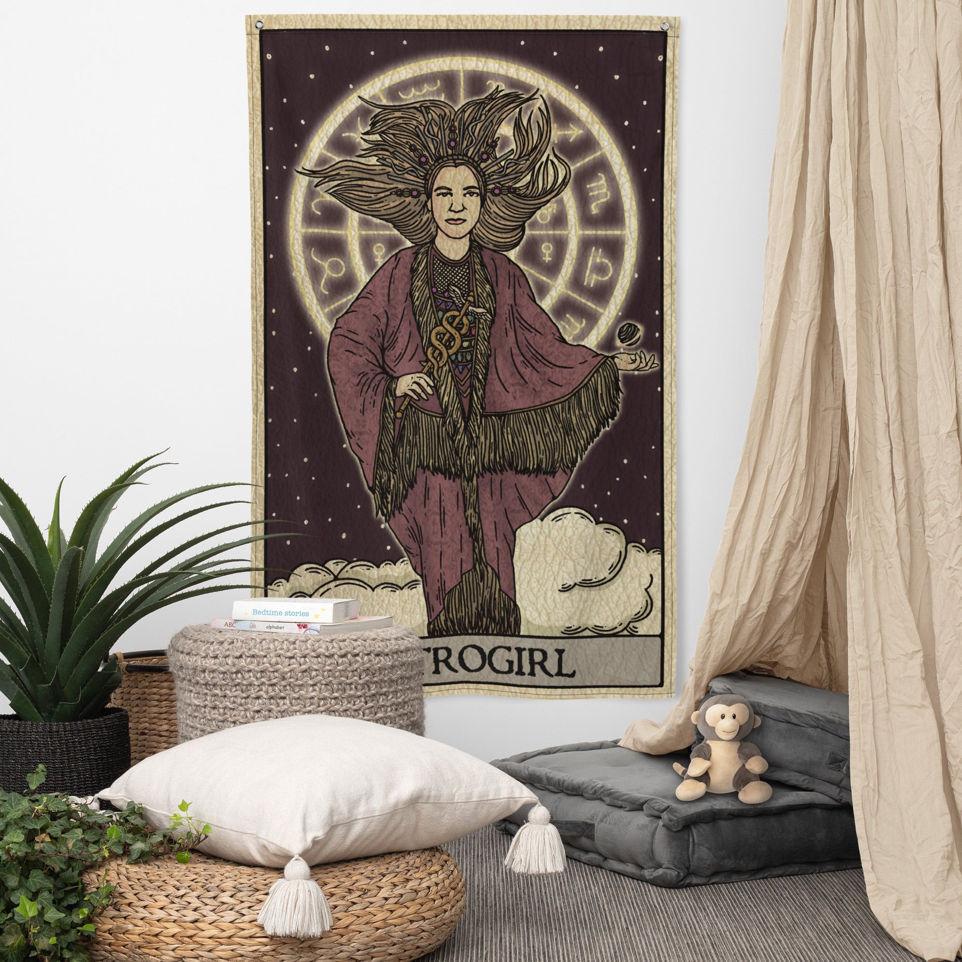 'Astrogirl' Astrology-Themed Tarot Card Flag Tapestry