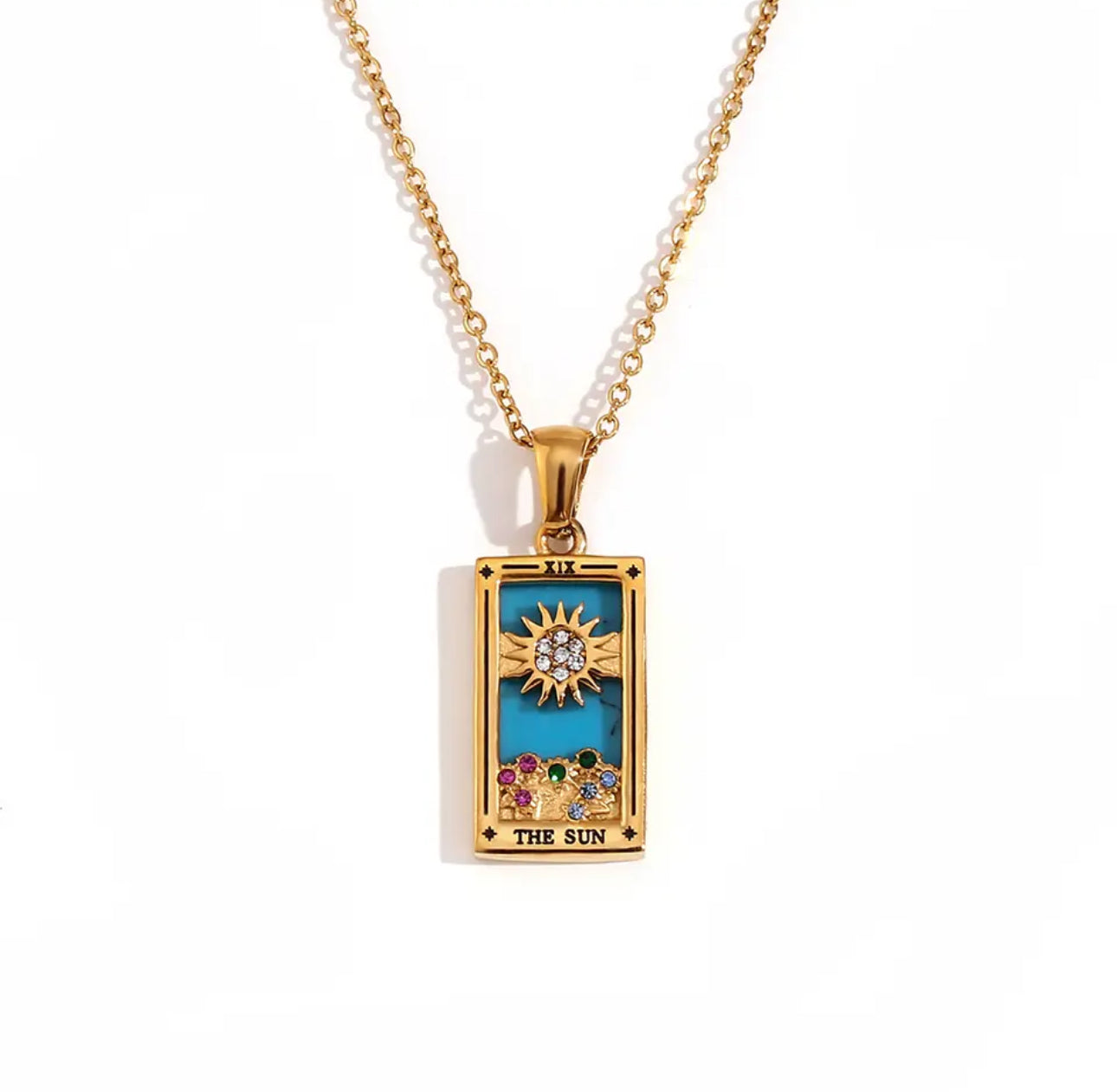 Modeled after the original Rider-Waite-Smith Cards, this piece is a stunning addition to any jewelry collection. Silver finish made from pure 316L Stainless Steel and enamel; Gold made from 18k Gold Plated 316L Stainless Steel and Enamel.