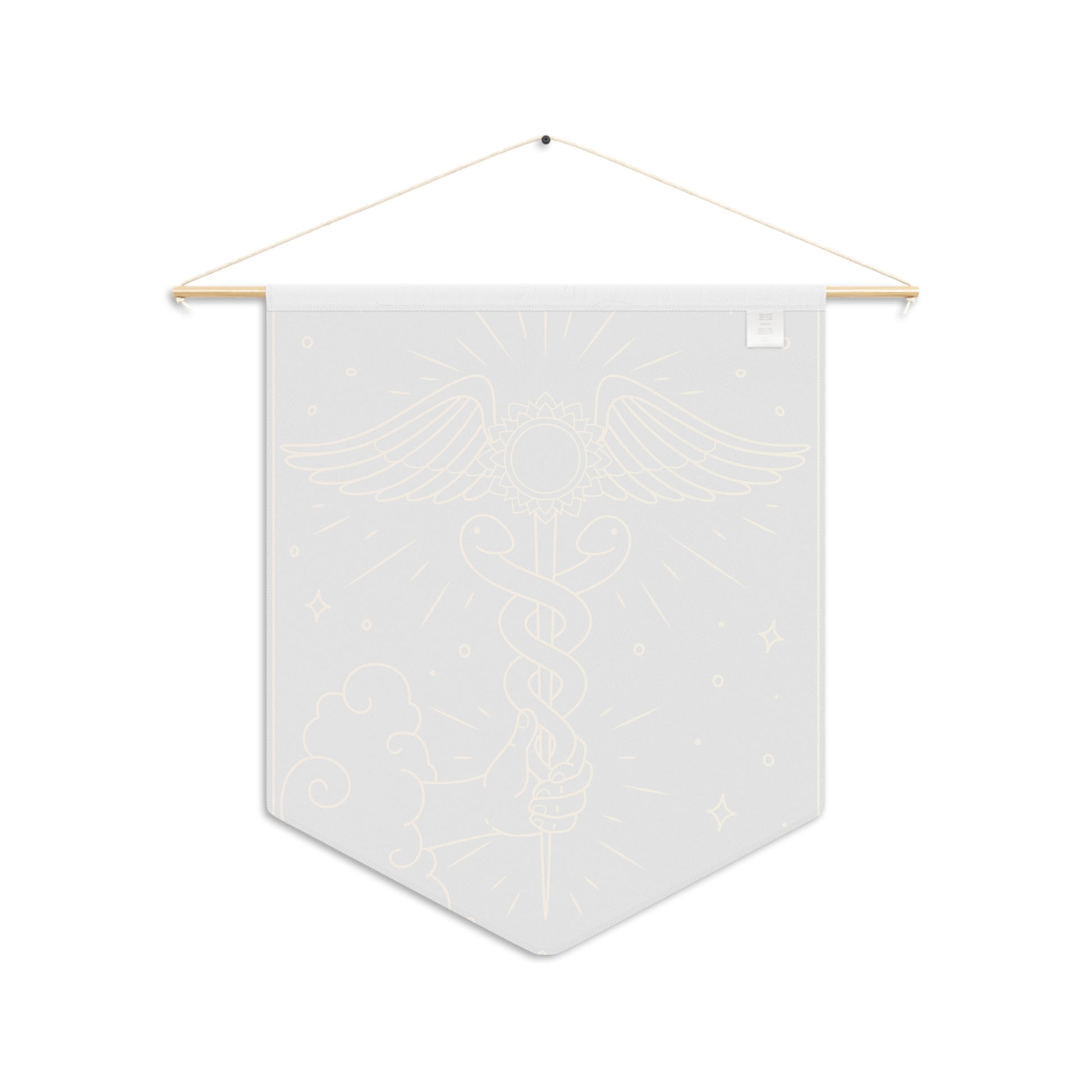 'The Enlightenment' Spiritual Caduceus Staff - Crown Chakra | 'Ace of Wands' Tarot Card Hanging Wall Pennant