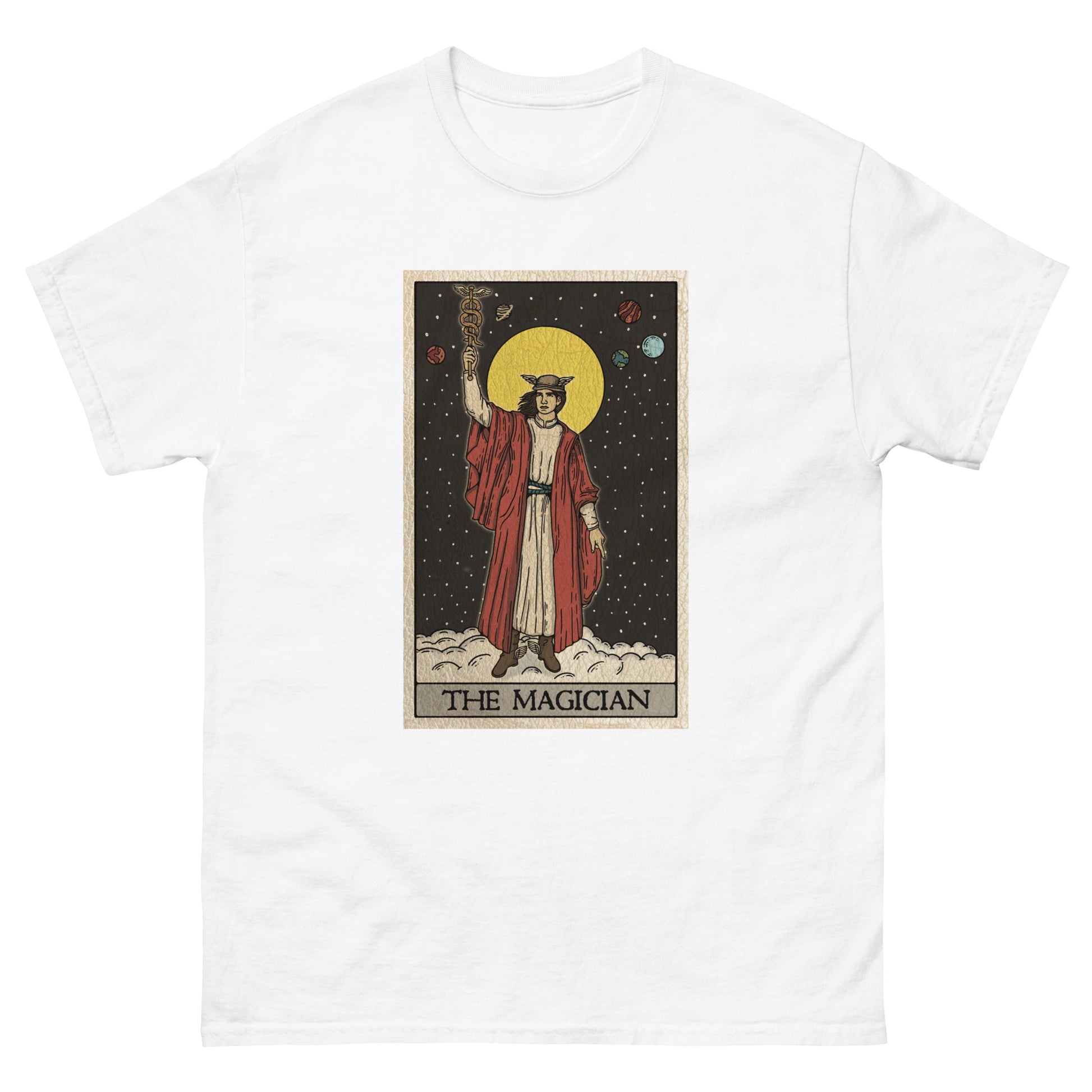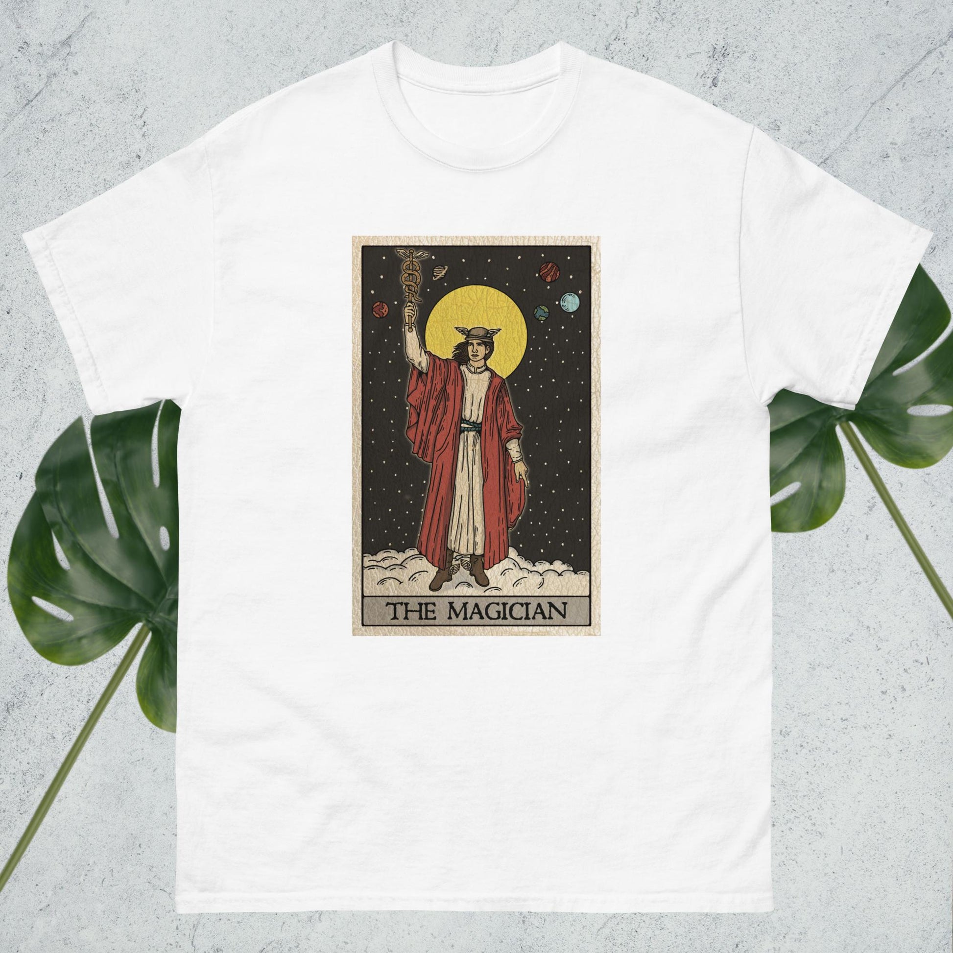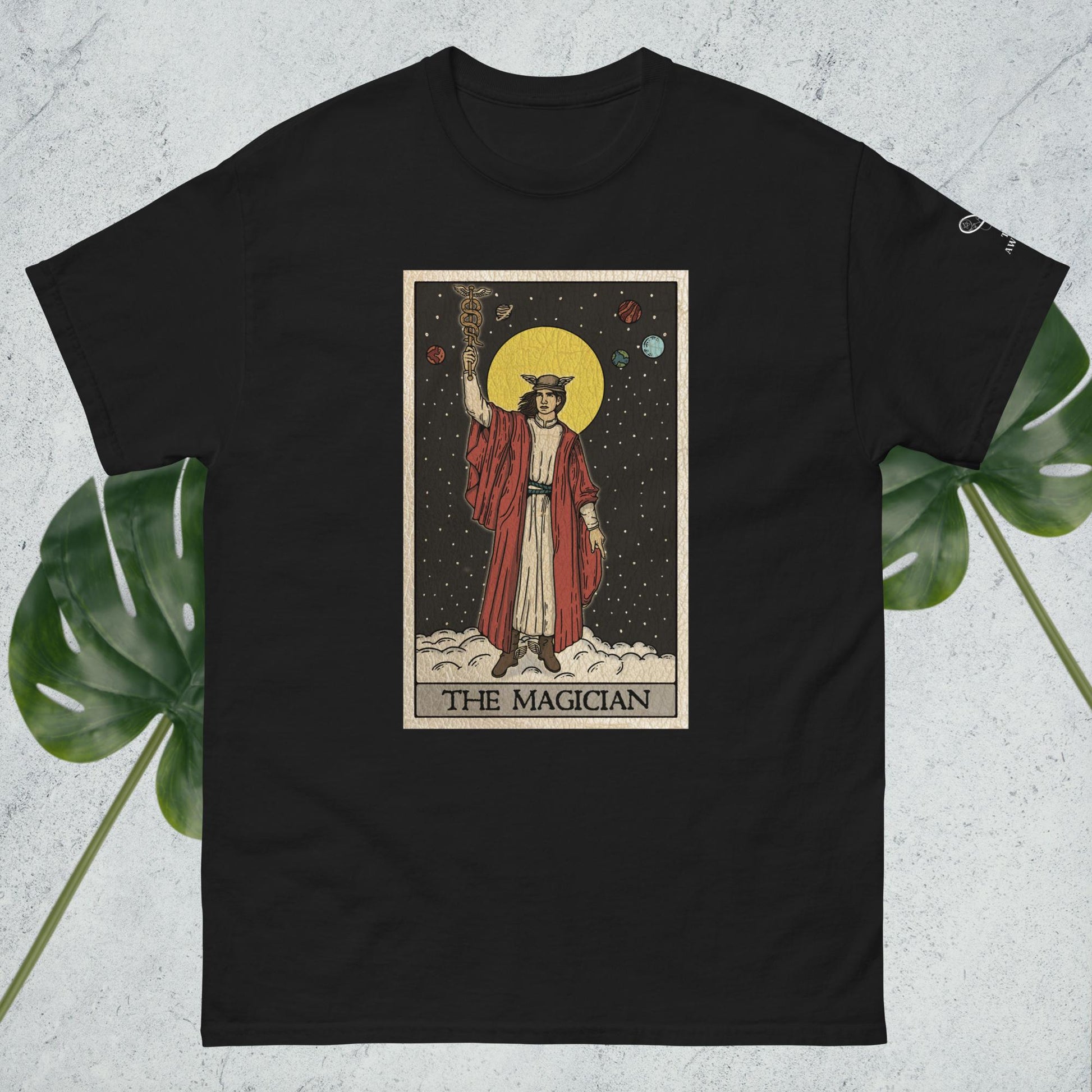This classic unisex tee features the powerful Magician Tarot Card, which represents the god Hermes, in a bold style. Perfect for lovers of Tarot and Greek mythology, this tee is perfect for casual days or to express your unique style.